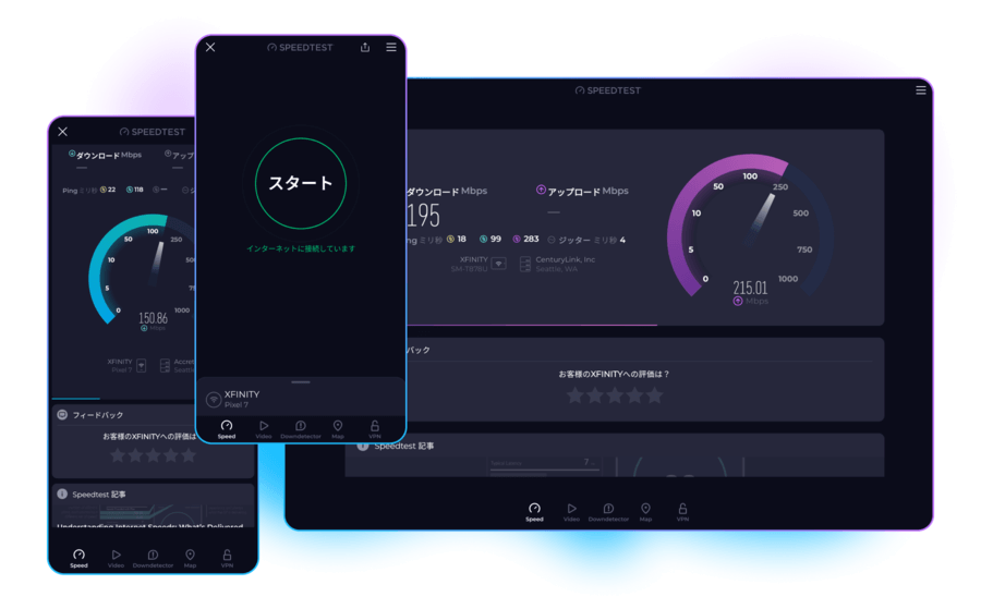 1回のタップで簡単にテストを実行し、モバイル接続の速度を確認できます。当社のグローバルネットワークにより、場所を問わず正確なテストが可能です。無料のSpeedtestアプリは、 Android と iOSの両方でご利用できます.